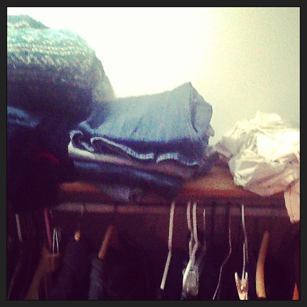 | sweaters, jeans, and my corset and chemise. what, you don't keep your corset in the closet? |